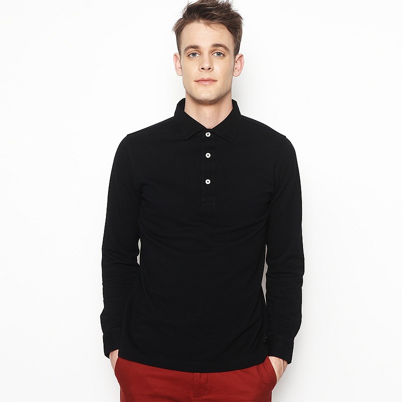 翻領(lǐng)長袖T恤衫,純色款式定制,經(jīng)典男女款式
