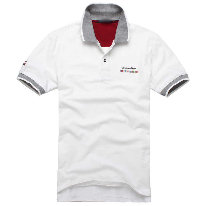 白色領(lǐng)袖撞色,男女時(shí)尚T恤款式定制,可刺繡公司標(biāo)志