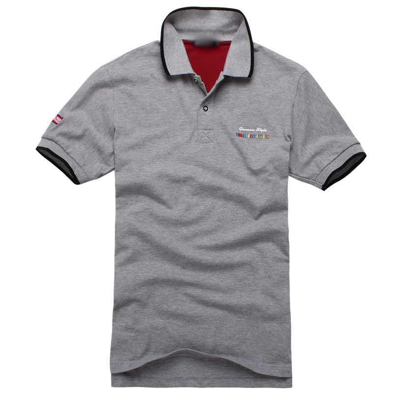 花灰色衣領(lǐng)袖口撞色,翻領(lǐng)短袖T恤衫,時(shí)尚款式定制,精梭純棉品質(zhì)