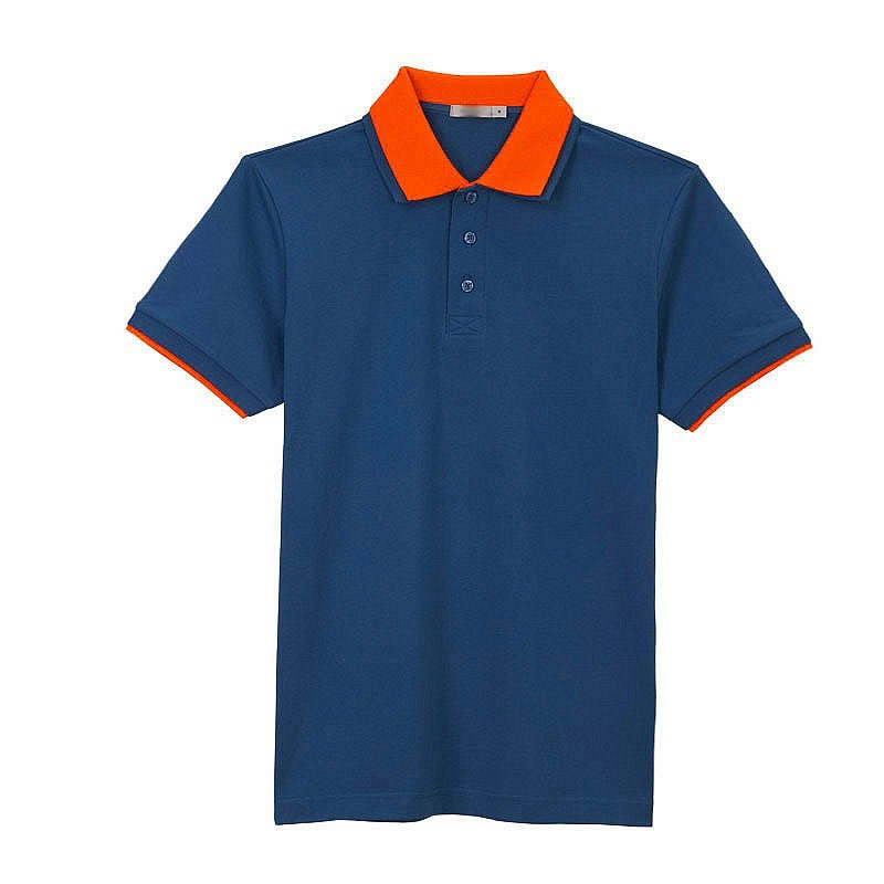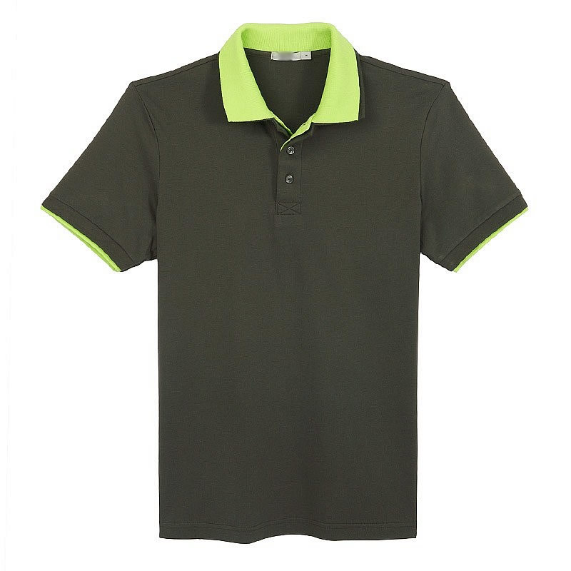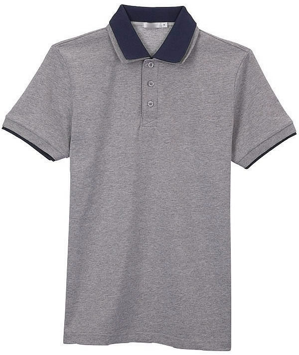 花灰色衣領(lǐng)袖口撞色,翻領(lǐng)短袖T恤衫,時尚款式定制,精梭純棉品質(zhì)