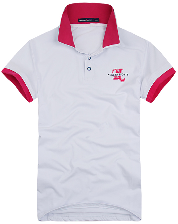 白色領(lǐng)袖撞色,男女時(shí)尚T恤款式定制,可刺繡公司標(biāo)志