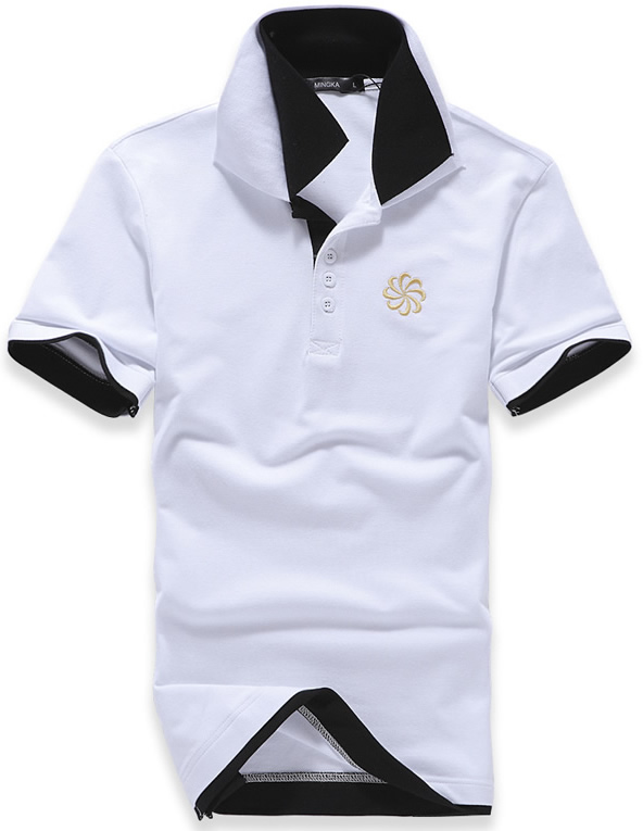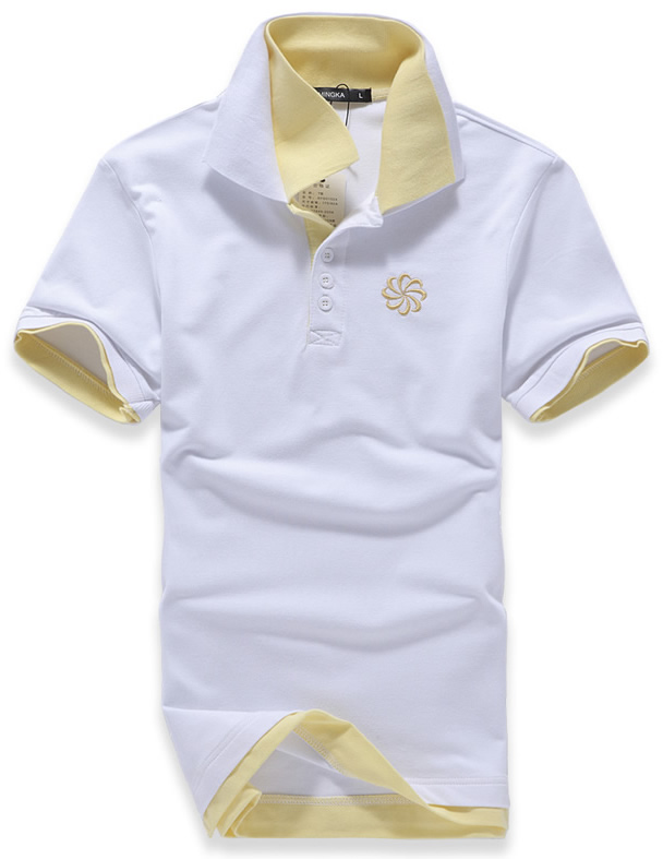 白色領(lǐng)袖撞色,男女時(shí)尚T恤款式定制,可刺繡公司標(biāo)志
