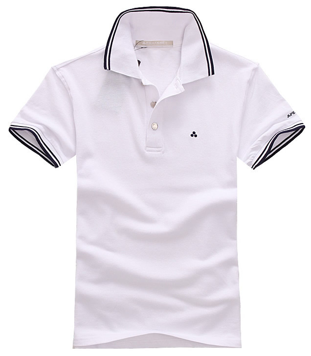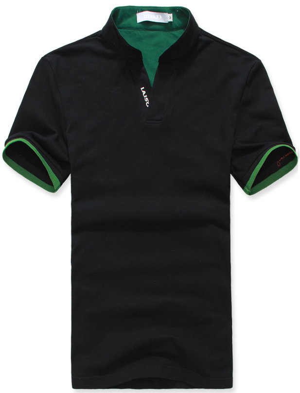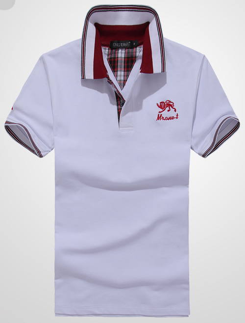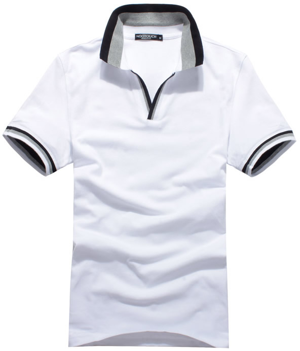 白色領(lǐng)袖撞色,男女時(shí)尚T恤款式定制,可刺繡公司標(biāo)志