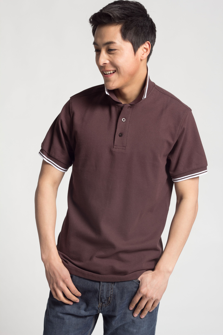 花灰色衣領(lǐng)袖口撞色,翻領(lǐng)短袖T恤衫,時尚款式定制,精梭純棉品質(zhì)