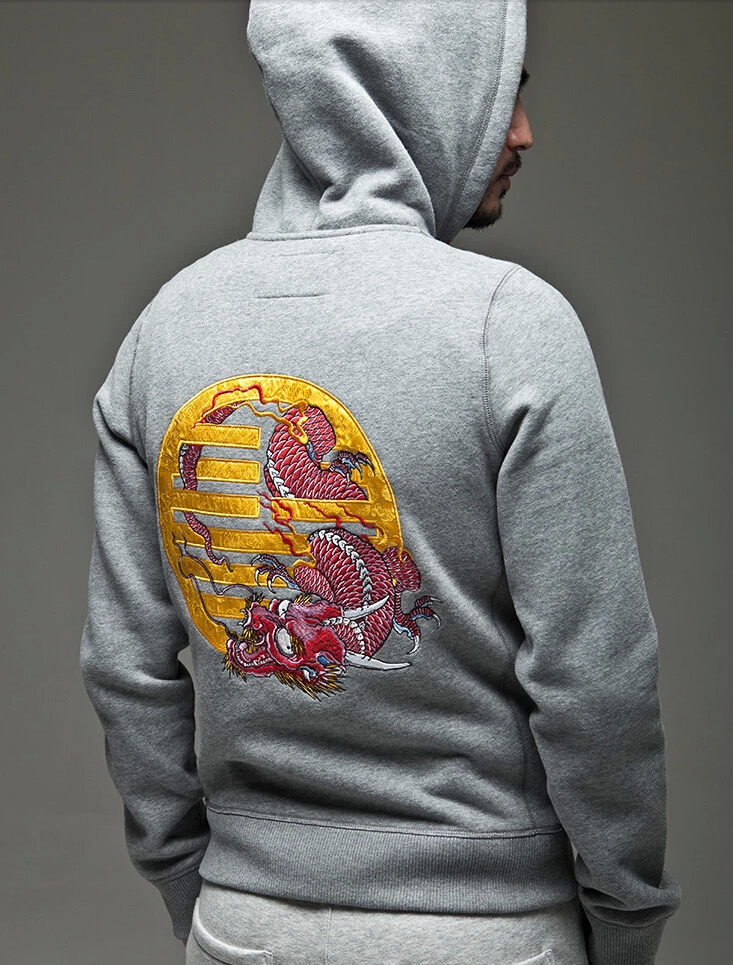 灰色時尚款繡花開衫衛(wèi)衣