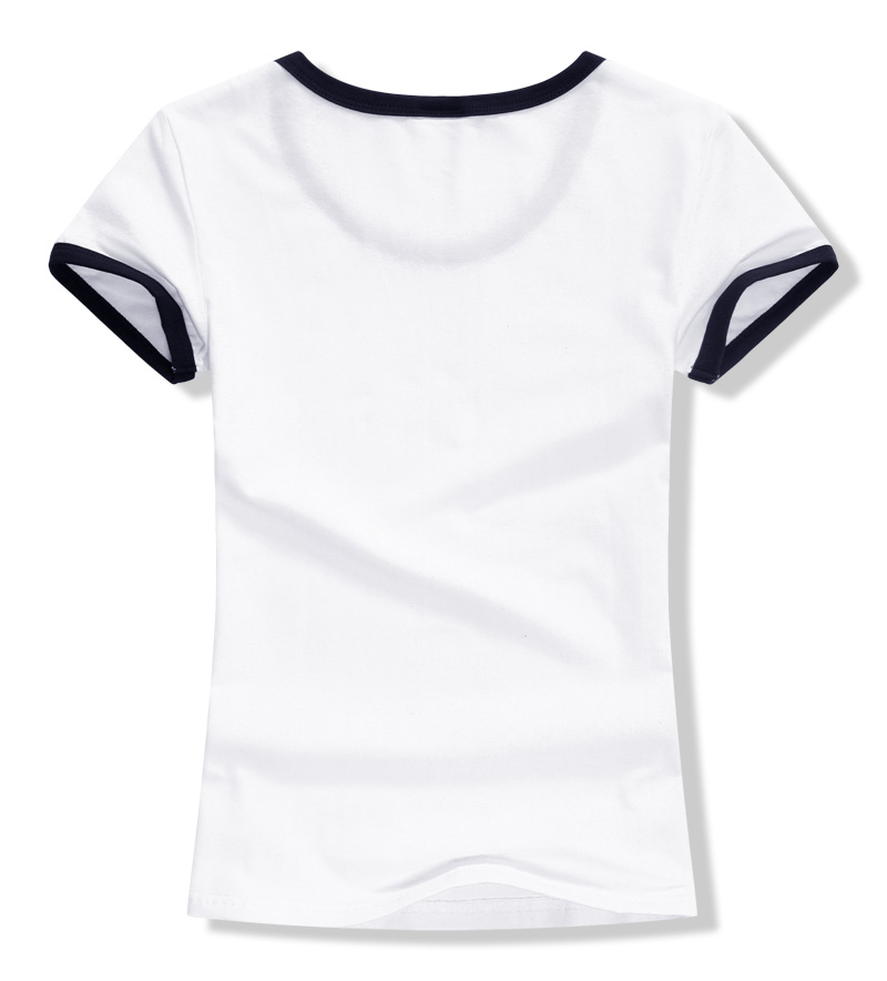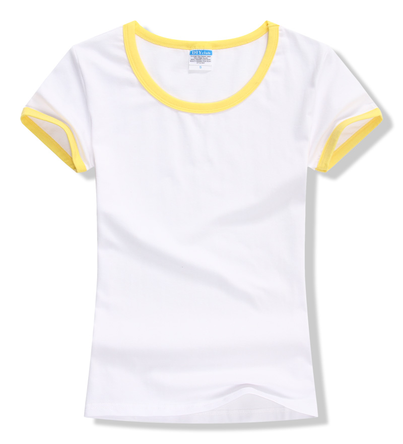 女裝圓領(lǐng)短袖T恤衫,領(lǐng)袖撞色款式,7個顏色現(xiàn)貨T恤衫批發(fā)