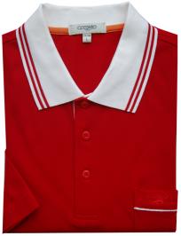 大紅色珠地純棉POLO衫,領(lǐng)袖間條撞色,門襟撞色男女款定制