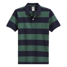 【定制】藍(lán)綠條紋T恤衫男士翻領(lǐng)短袖時(shí)尚來襲款式訂做