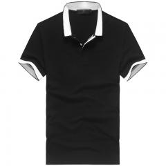黑色男士短袖棉質POLO衫 領袖撞色時尚款制作