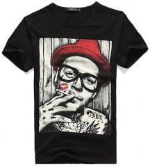 時尚男款黑色棉質T恤衫加工設計