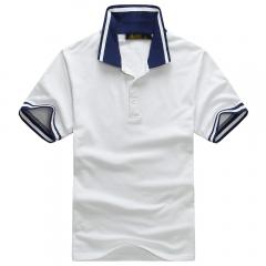 白色男款時尚t恤衫 翻領(lǐng)短袖珠地棉印制