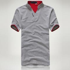 花灰色男士翻領(lǐng)短袖POLO衫 領(lǐng)袖撞色時尚款