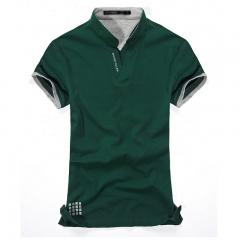 【定制】深綠色時尚小立領T恤衫訂制 男士流行款式