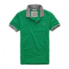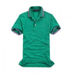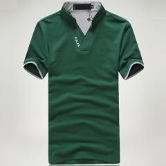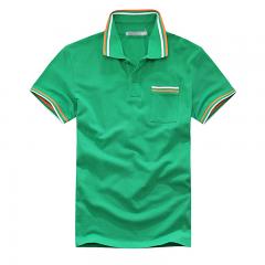 綠色男款短袖精梭棉T恤衫 雙領(lǐng)時(shí)尚款式定做