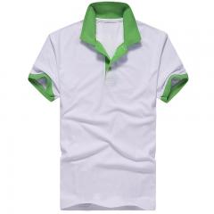 綠色翻領(lǐng)短袖純棉POLO衫 衣領(lǐng)袖口撞色款式