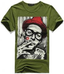 綠色男款短袖T恤衫 夏裝男士潮款印制