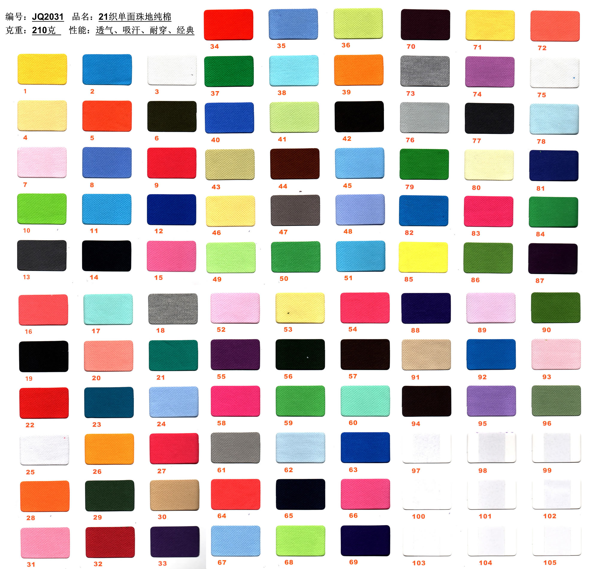 性能:透氣,吸汗,舒適,不易縮水