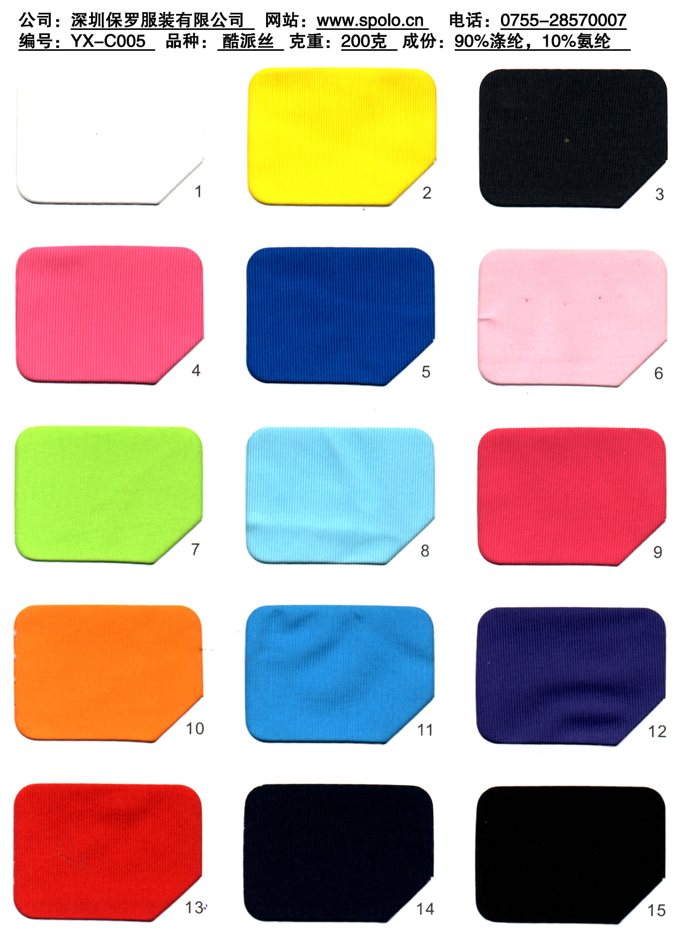成份:5%氨綸,95%滌綸