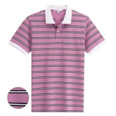 【定制】淡紅色細(xì)條紋POLO衫 男士翻領(lǐng)短袖加工訂制