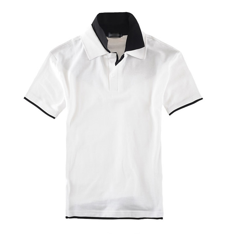 白色領(lǐng)袖撞色,男女時尚T恤款式定制,可刺繡公司標(biāo)志