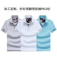 翻領短袖t恤衫,襯衫格子衣領定制,幾十個顏色可選,刺繡企業(yè)logo